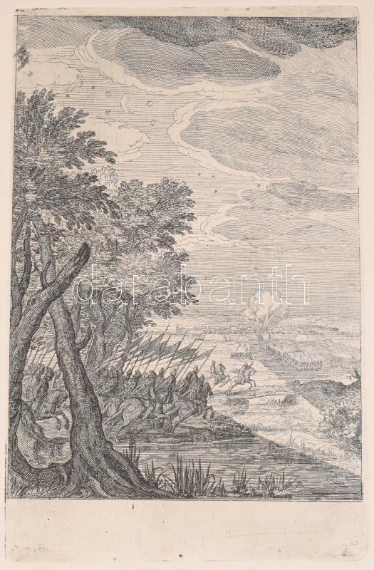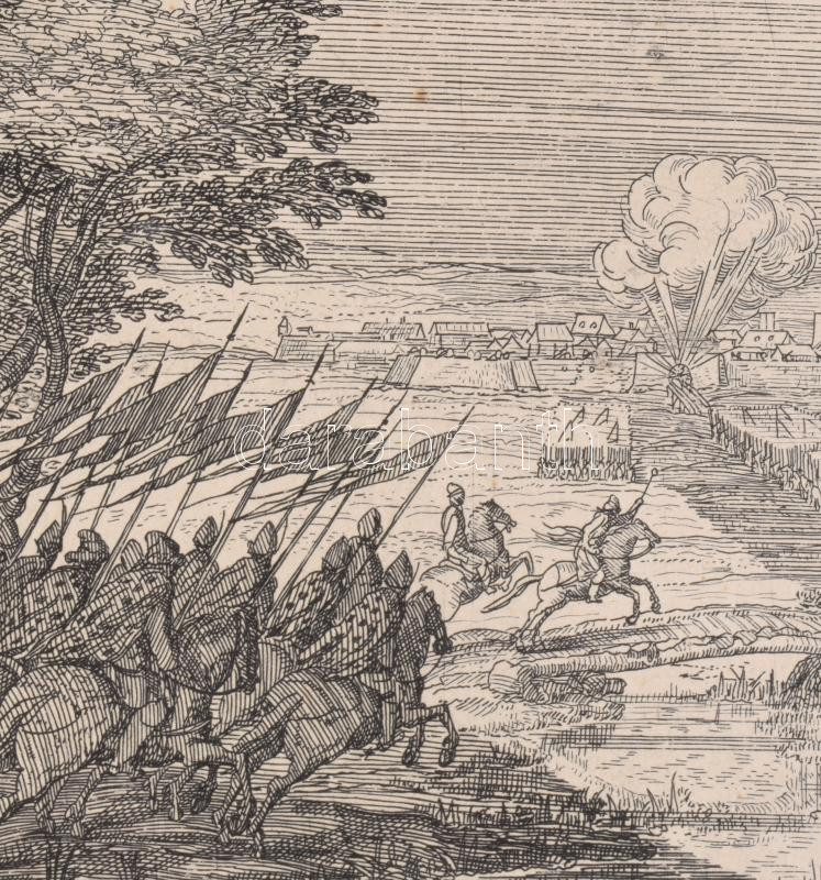 1934 Törökök és magyarok harcát ábrázoló csatajelenet, várostrom, papír, rézmetszet, hajtásnyommal, 22x14 cm, lap: 49x35 cm