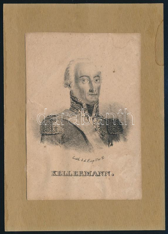 cca 1800 François Christophe Kellermann francia tábornok (1735-1820) litográfia, kartonra ragasztva, kissé foltos, 14×9 cm
