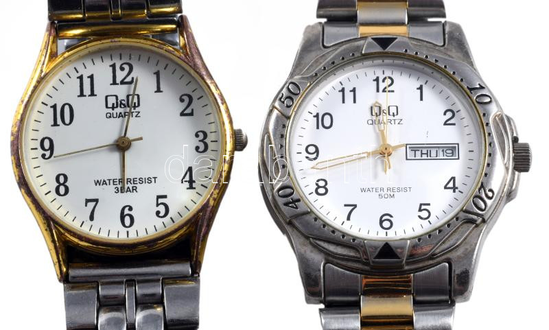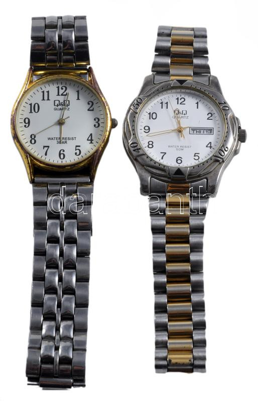 2 darab Q&Q karóra, fém szíjjal, működnek, egyiken naptárkijelzéssel