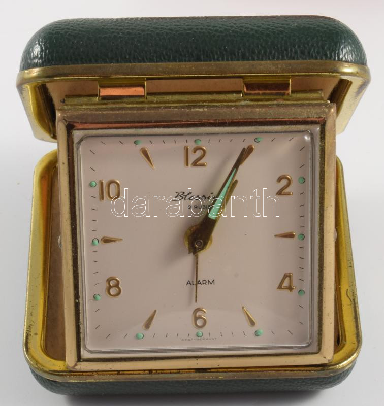 Blessing utazó ébresztőóra, kézi felhúzós, eredeti dobozában 8x8 cm