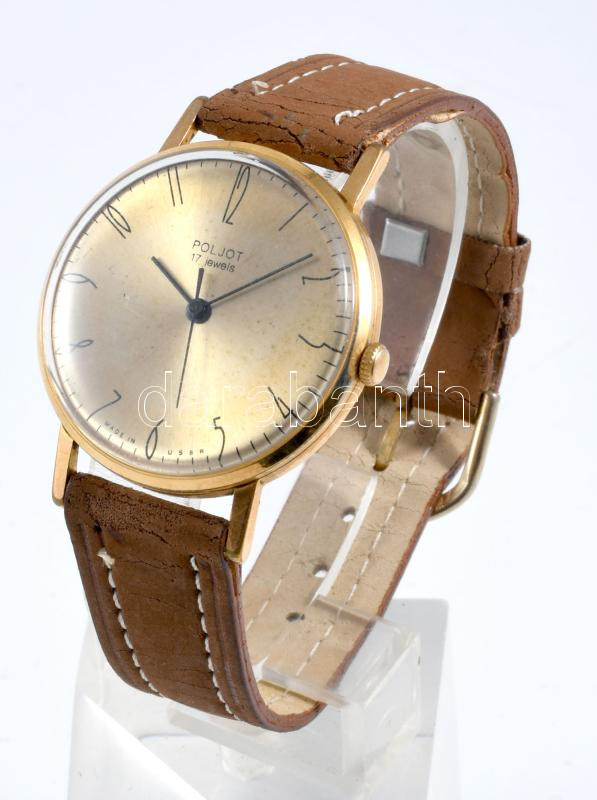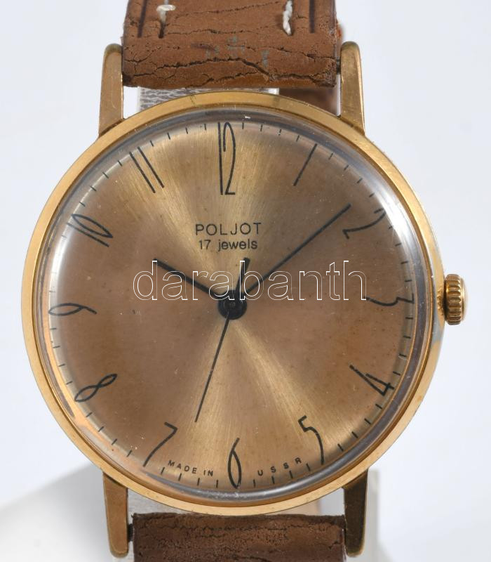 Poljot 17 köves mechanikus karóra, bőr szíjjal, működik, d: 34mm