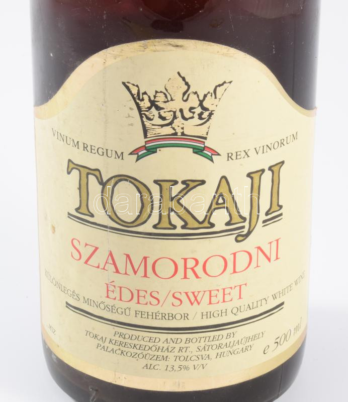 1991 Tokaji szamorodni bontatlan palack fehérbor, Tokaj Kereskedőház, 500ml, bontatlan.