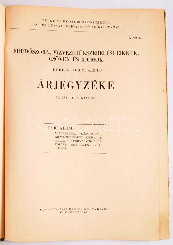 1966 Fürdőszoba, vízvezetékszerelési cikkek, csövek, és idomok képes árjegyzéke 180 p.