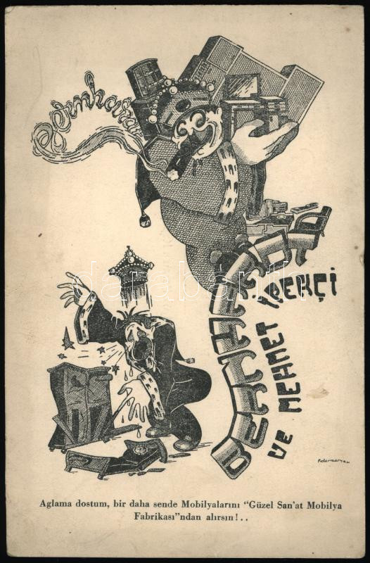 Bernhardt Béla törökországi bútorgyárának reklámlapja, kétoldalas, 16,5x11 cm