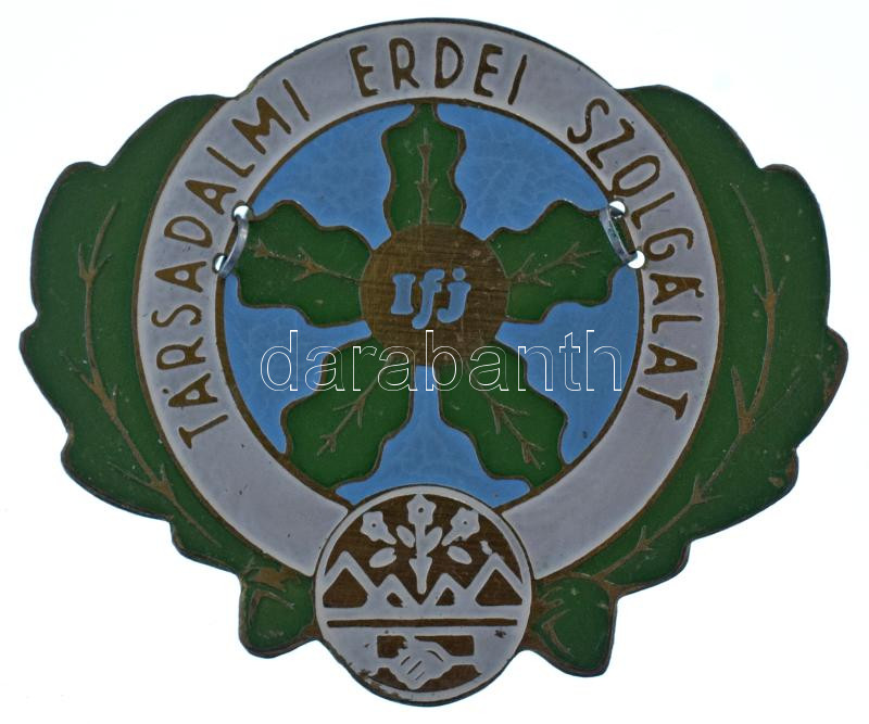 1970 k. "Társadalmi Erdei Szolgálat (TESZ) - Ifjúsági" festett fém jelvény rögzítéshez szolgáló lyukakkal (58x48mm) T:AU,XF