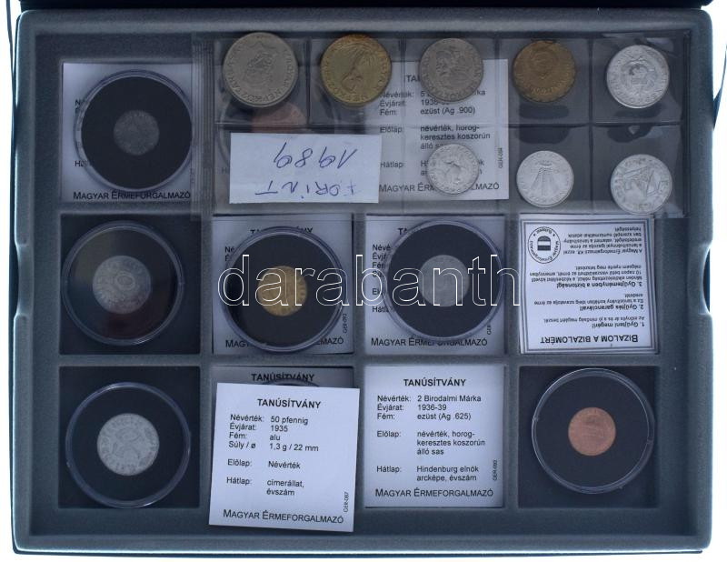 1989. 10f-20Ft (8xklf) forgalmi összeállítás + Német Harmadik Birodalom 1934-1944. 1pf-1M (10xklf) érmetartó kazettába rendezve T:vegyes