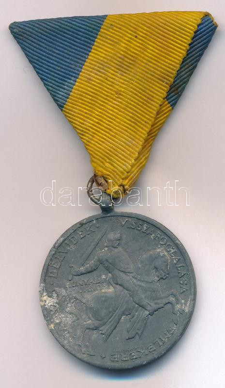 Hungary 1941. "Commemorative Medal for the Return of Southern Hungary" zinc medal with ribbon. Sign.:BERÁN L. C:VF corrosion