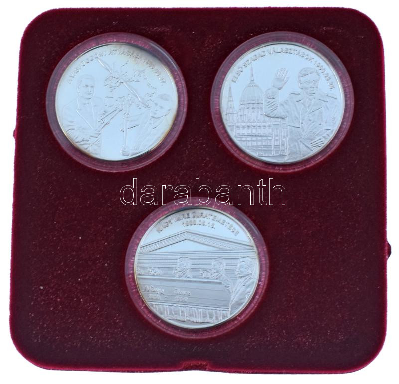 2009. "Rendszerváltás szett": "Nagy Imre újratemetése 1989. 06. 16.", "A Vasfüggöny átvágása 1989. 06. 27." és "Első szabad választások 1990. 03. 25." ezüstözött Cu-Ni emlékérmek kapszulában, dísztokban (38,61mm) T:PP kis patina