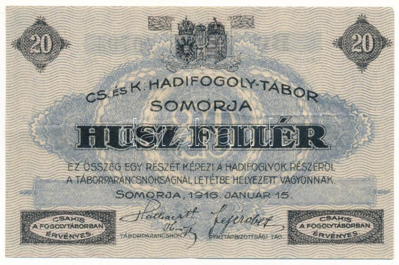 1916. Somorja / hadifogolytábor 20f arab sorszámmal "B1 0794" T:F szép papír