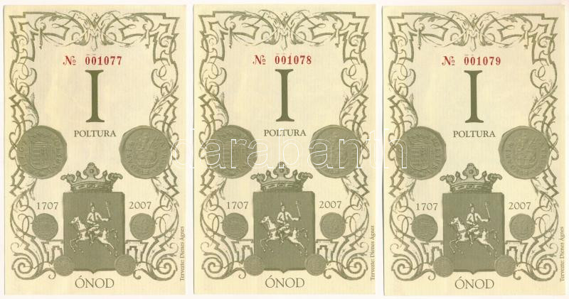 2007. Ónod I Poltura (3db) sorszámkövetők "001077 - 001079" T:UNC,AU