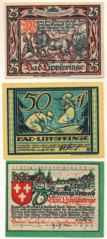 Germany /Weimar Republic / Lippspringe 1921. 25 Pfennig + 50 Pfennig + 75 Pfennig C:AU-XF