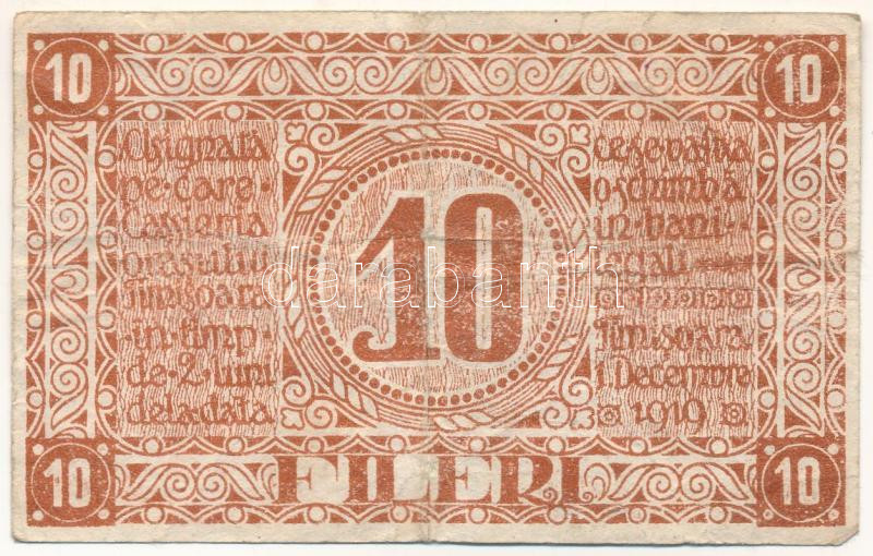 Romania / Timişoara 1919. 10 Fileri local money / necessity money (notgeld) C:VG