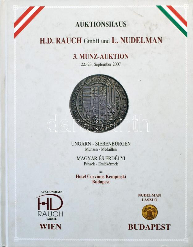 H.D. Rauch GmbH., L. Nudelman: 3. Münz-Auktion - Magyar és Erdélyi Pénzek - Emlékérmek. Auktionshaus, Hotel Corvinus Kempinski Budapest, 2007. Használt, de közel újszerű állapotban