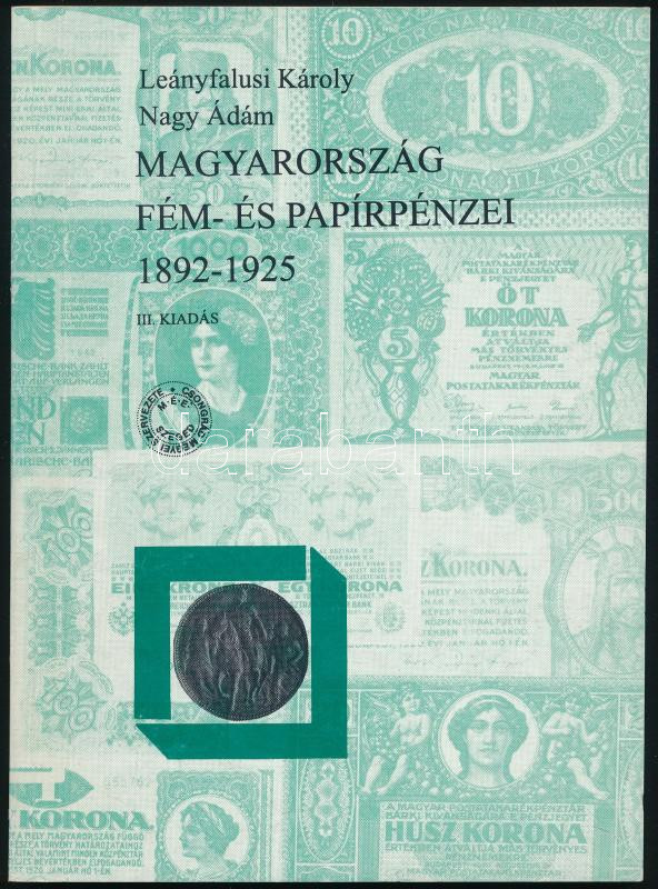 Leányfalusi Károly - Nagy Ádám: Magyarország Fém- és Papírpénzei 1892-1925. III. kiadás. MÉE Csongrád Megyei Szervezete, 1997. Használt, de szép állapotban