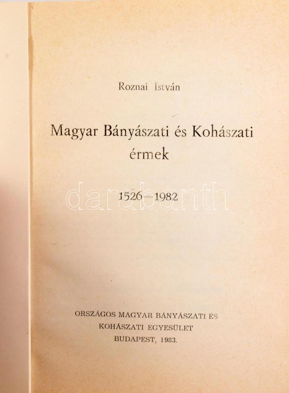 Roznai István: Magyar bányászati és kohászati érmek 1526-1982. 1983, Országos Magyar Bányászati és Kohászati Egyesület, 1983, papírkötés, foltos borítóval.