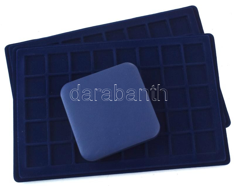 2db érmetartó tálca, összesen 80db 32x32mm-es férőhellyel. Külső méreteik: 331x218mm + műanyag dísztok, 3db 28mm átmérőjű férőhellyel. Használt, jó állapot