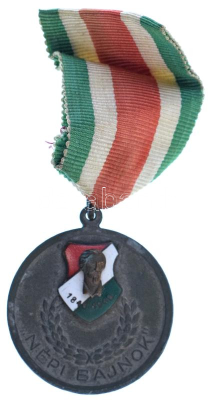 1948. "Népi Bajnok" Zn sakk dÃjérem zománcozott "PetÅ‘fi" rátéttel az 1848-1849-es forradalom 100. évfordulója alkalmából, nemzetiszÃn mellszalagon (36mm) T:XF oxidáció
