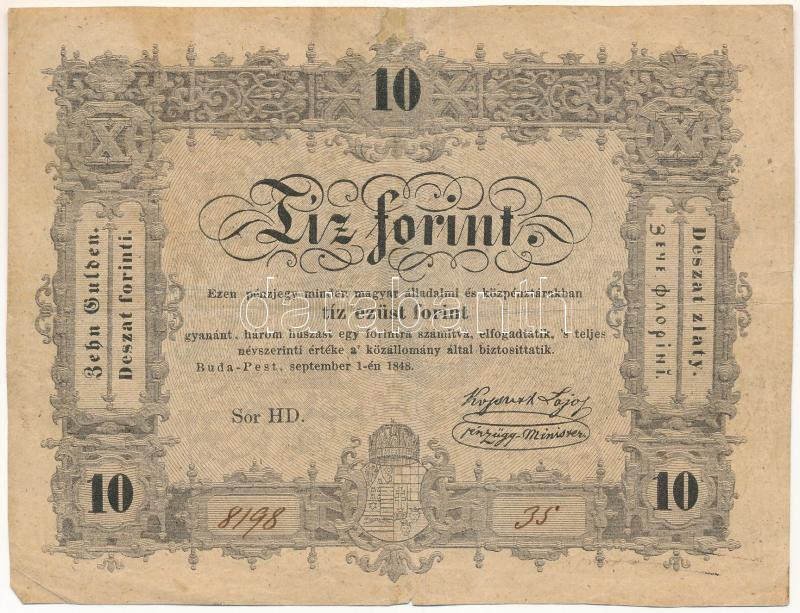 1848. 10Ft "Kossuth bankó" "HD. 8198 35" T:F,VG ragasztott