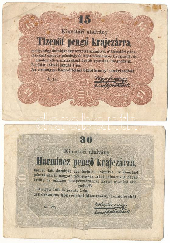 1849. 15kr "A.tz" " "Kossuth bankó" + 30kr "" ü.aw"Kossuth bankó" T:F fo.