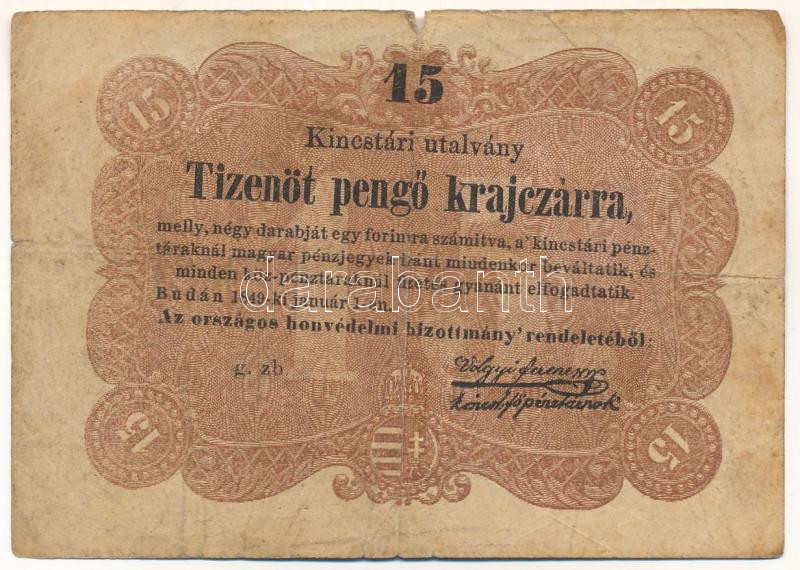 1849. 15kr "Kossuth bankó" T:VG