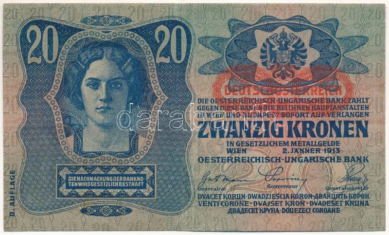 1913. 20K "1185 160290" piros "Deutschösterreich" felülbélyegzéssel T:F szép papír