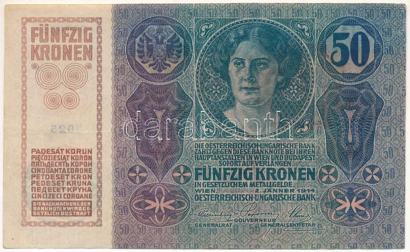 1914. 50K "1025 999485" piros "MAGYARORSZÁG" felülbélyegzéssel T:F szép papír