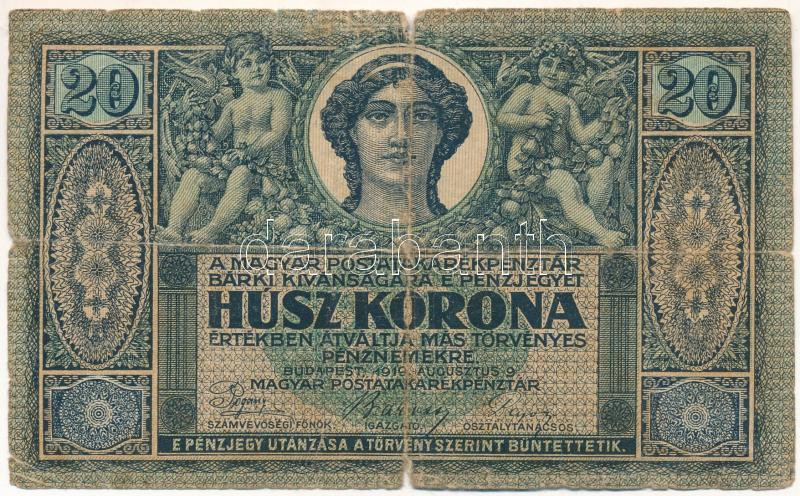 Hungary 1919. August 9th 20 Korona "R 2028 537017" C:VG small missing material