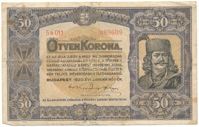 1920. 50K "5a 011 889609", "Orell Füssli Zürich" nyomdahely jelöléssel T:F fo.