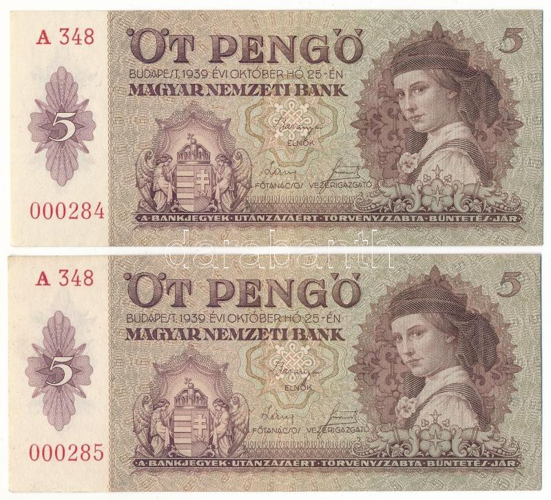 1939. 5P (2x) alacsony sorszámú sorszámkövetők "A 348 000284 - A 348 000285" T:XF