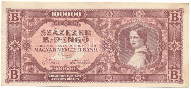 1946. 100.000BP T:AU,XF hajtatlan, de foltokkal