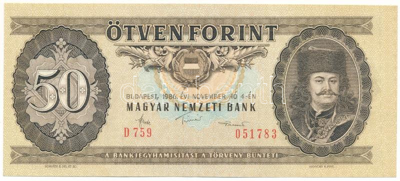 1986. 50Ft "D 759 051783" előoldalon balra eltolódott minta T:XF