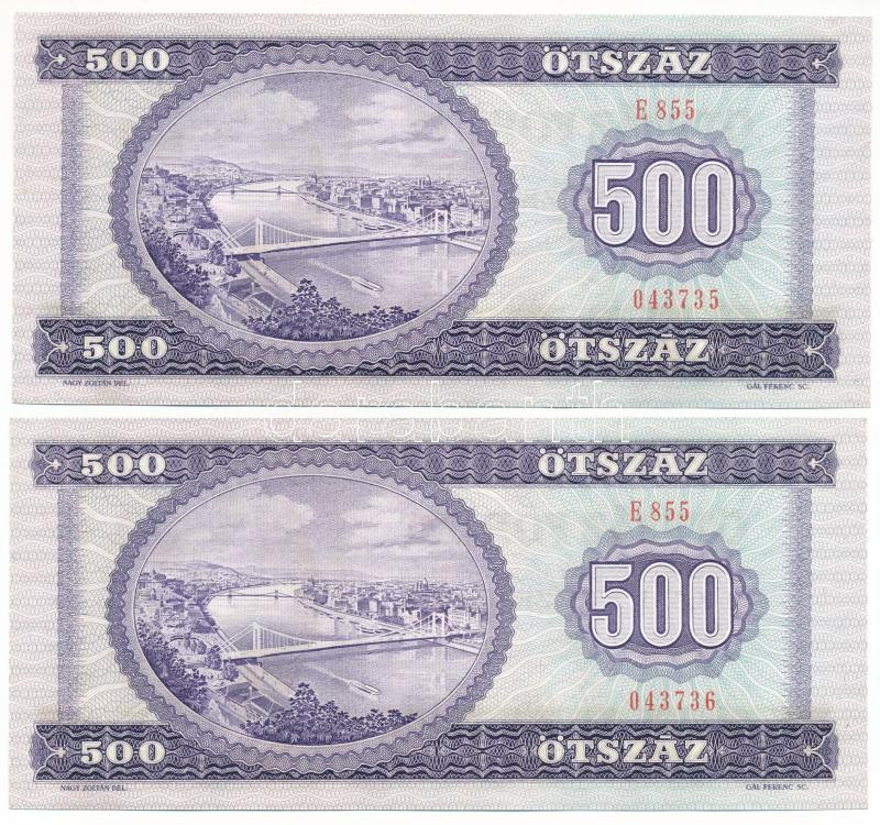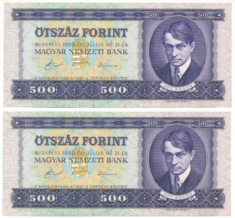1990. 500Ft (2x) sorszámkövetők "E 855 043735 - E 855 043736" Az 516-os árverés 30938 számú tételének előzménye. T:UNC,AU hullámos papír