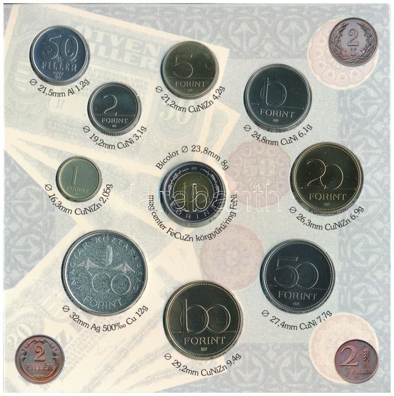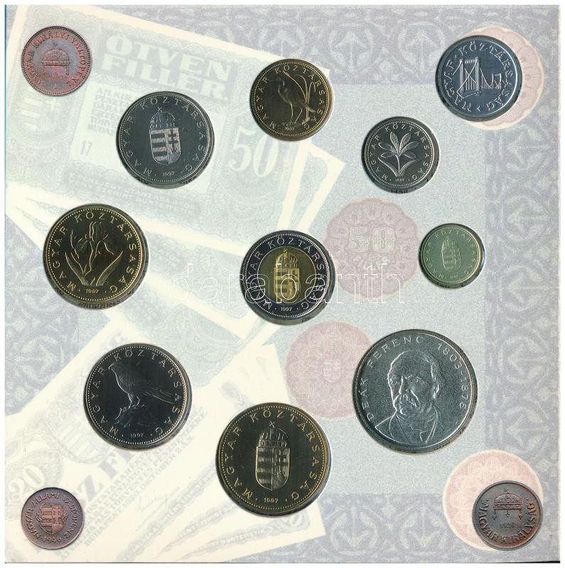 1997. 50f-200Ft (10xklf) "Magyarország pénzérméi" forgalmi sor dísztokban, közte 1997. 200Ft Ag "Deák" T:BU patina