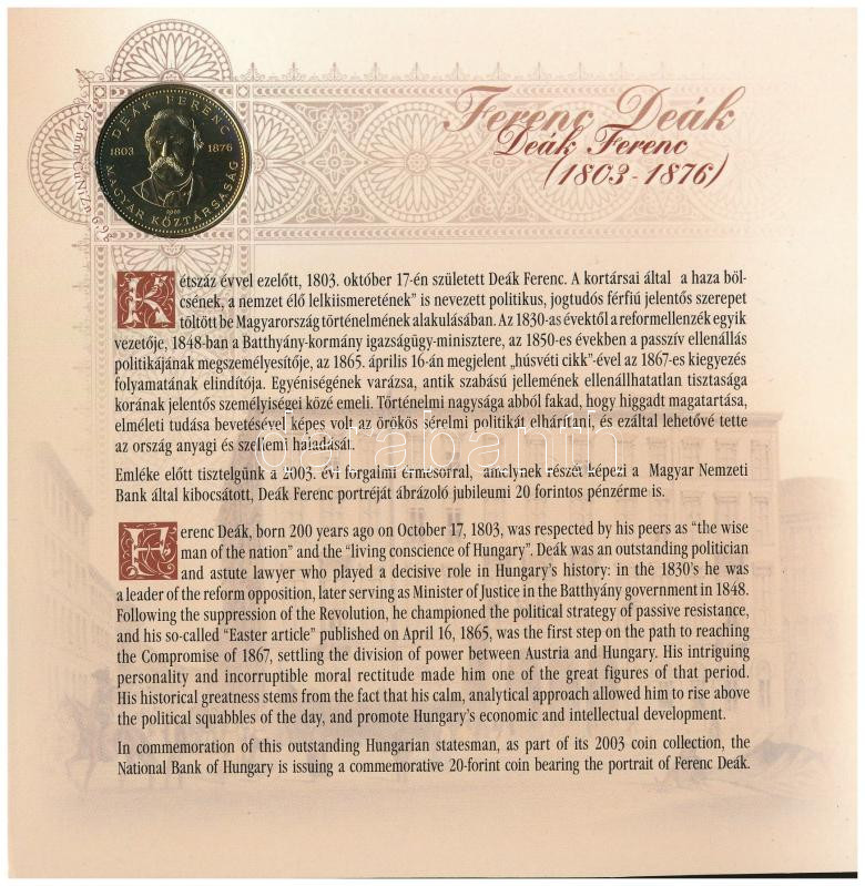 2003. 1Ft-100Ft (7xklf) forgalmi sor szettben + 20Ft "Deák Ferenc" forgalmi emlékérme T:BU