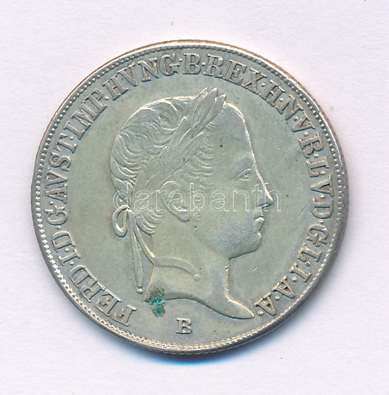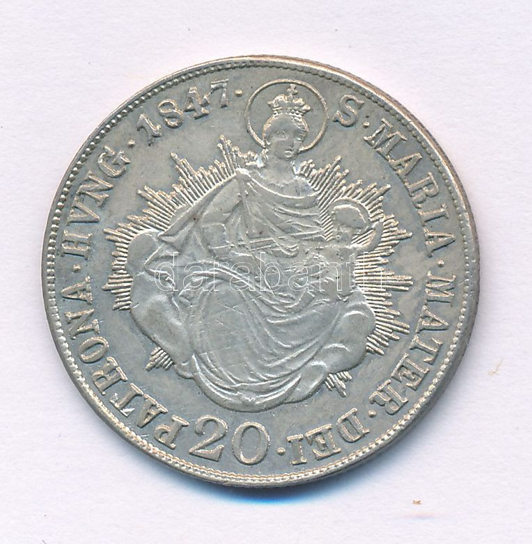 Hungary 1847B 20 Kreuzer Ag "Ferdinand V" C:AU,XF scratch, small patina