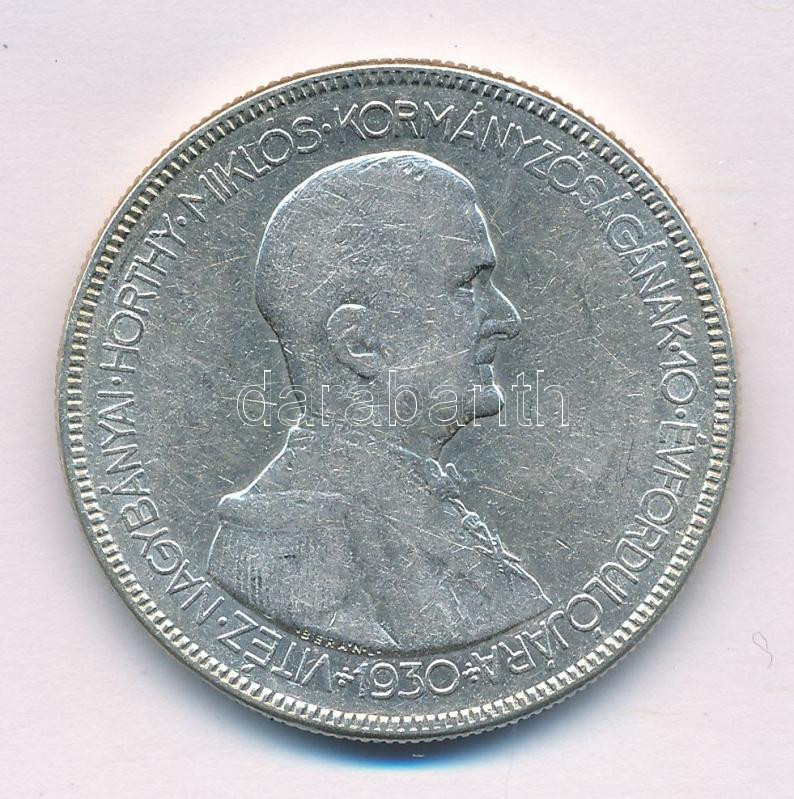 1930. 5P Ag "Horthy jobbra" kapszulában T:XF enyhén hajas