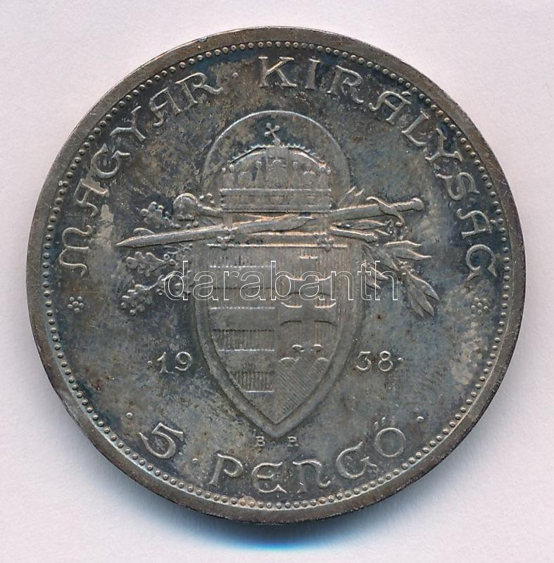 1938. 5P Ag "Szent István" T:AU,XF patina, ph.