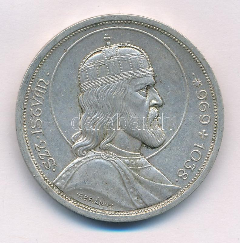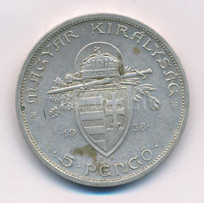 1938. 5P Ag "Szent István" T:AU,XF patina