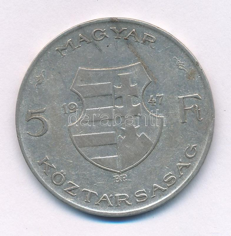 1947. 5Ft Ag "Kossuth" T:F patina