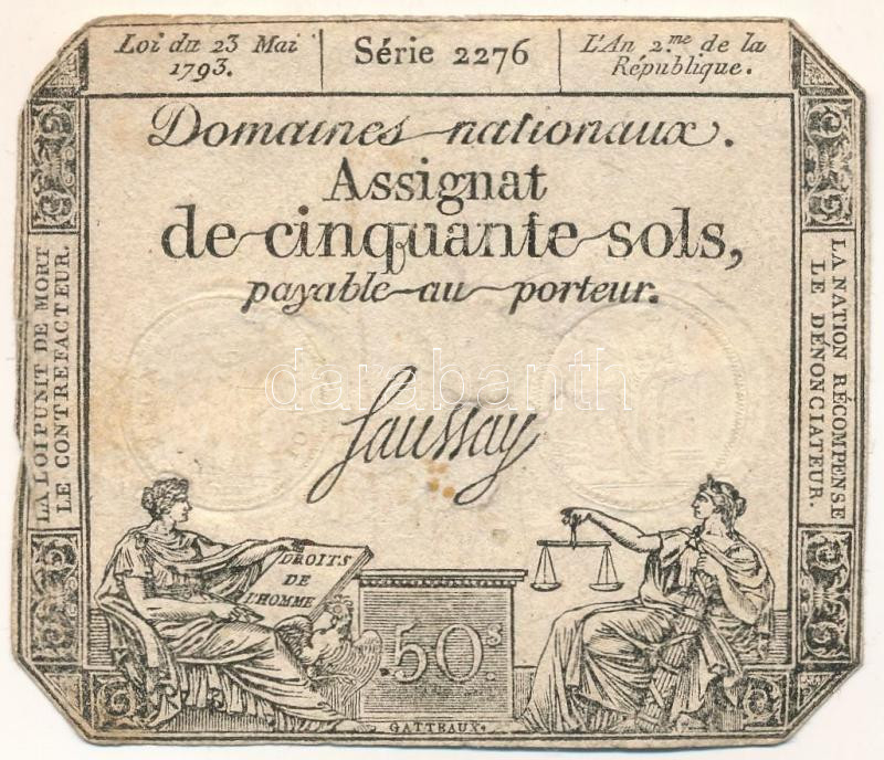 Franciaország 1793. 50s "Assignata" vízjellel és szárazpecséttel T:F,VG