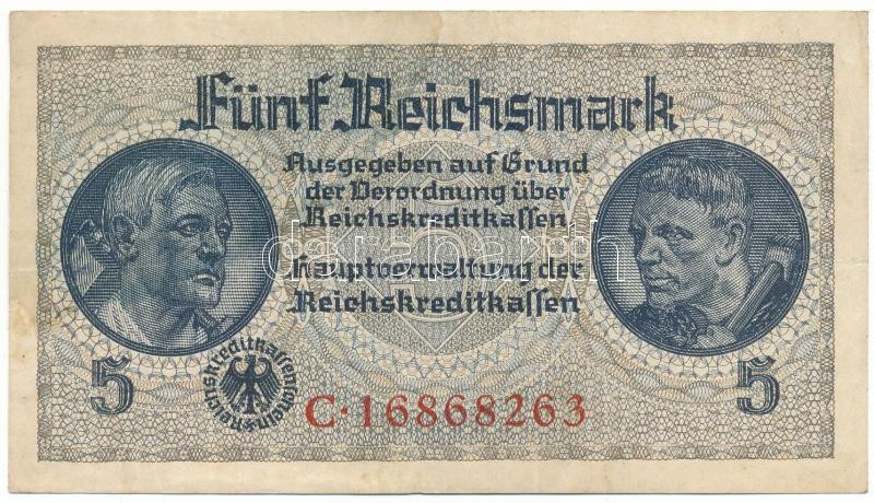 German Third Empire / German Occupied Territories 1940-1945. 5 Reichsmark "C 16868263" C:F fine paper