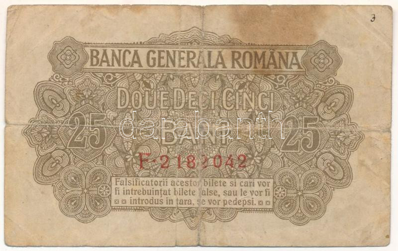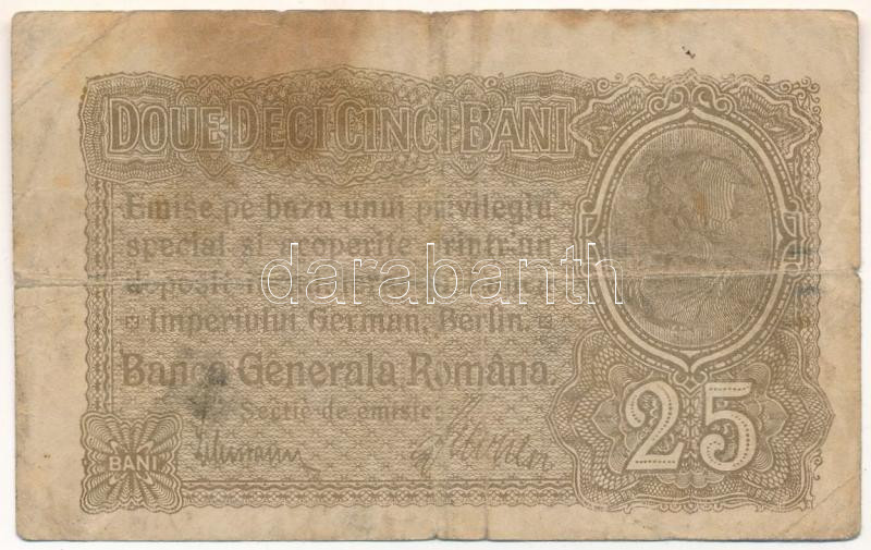 Romania 1917. German occupation 25 Bani "F 2182042" C:VG