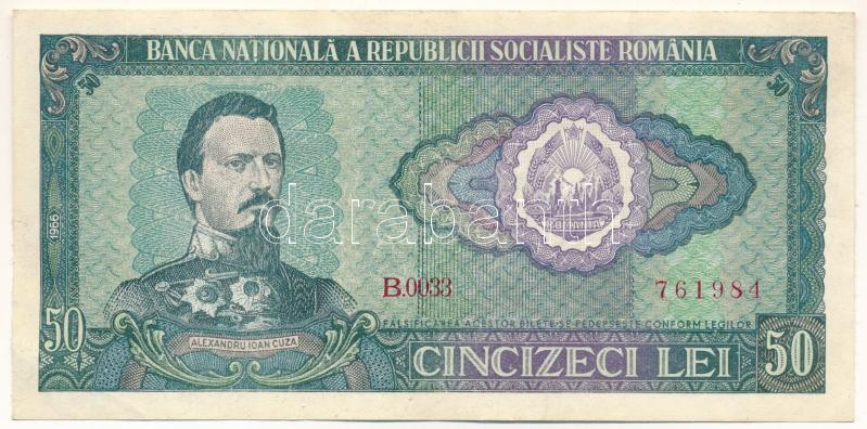 Romania 1966. 50 Lei "B.0033 761984" C:F, fine paper