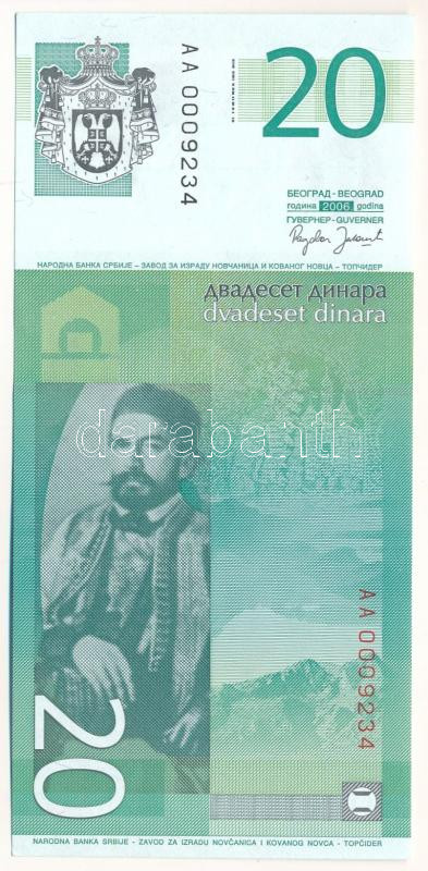 Serbia 2006. 20 Dinara "AA 0009234" C:UNC