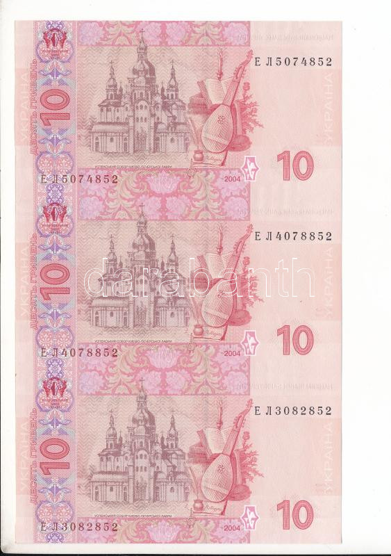 Ukrajna 2004. 10H vágatlan 3-as ívben, milliós helyi értéken sorszámkövető sorszámmal T:AU