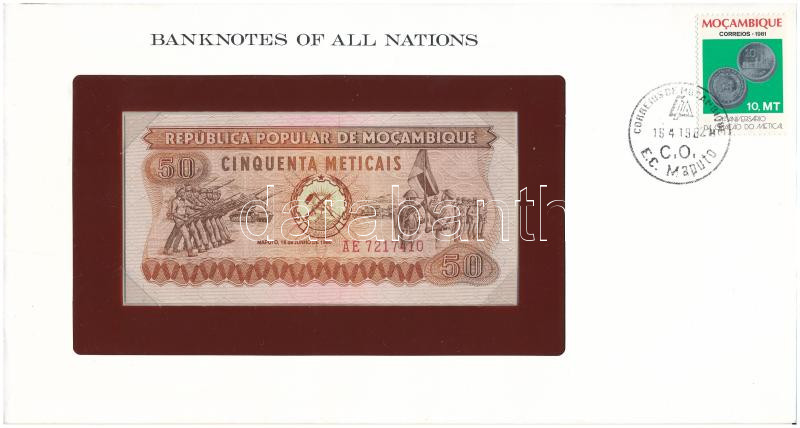 Mozambique 1980. 50 Meticais"AE 7217410" in envelope with stamp and cancellation C:UNC