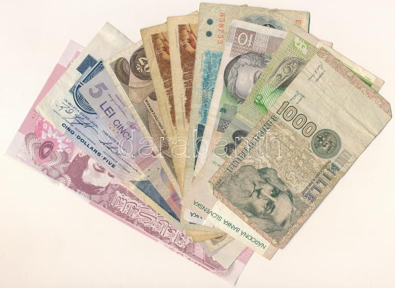 Vegyes, 10db-os bankjegytétel, benne: Kanada, Csehszlovákia, Ausztria, Olaszország, Szlovákia, Horvátország, Románia, Irak T:F-VG