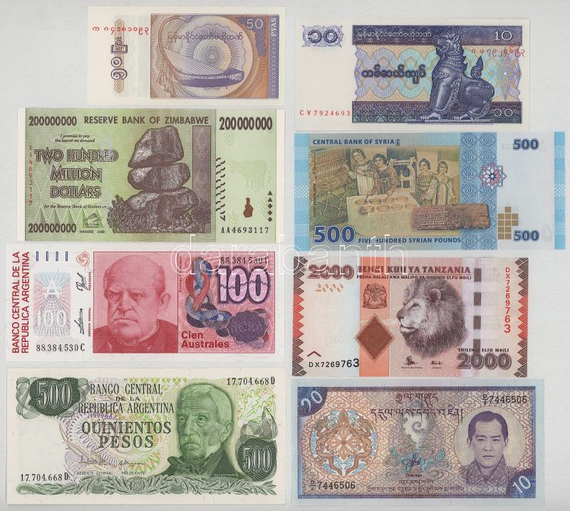 8db-os bankjegytétel, közte: Mianmar, Argentína, Szíria, Zimbabwe, Bhután, Tanzánia T:AU-F szép papír