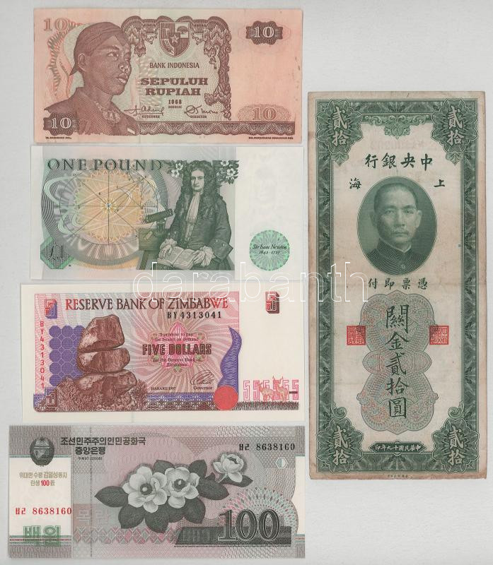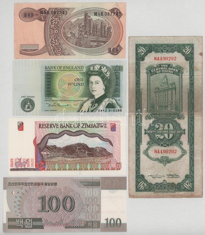Vegyes, 5db-os bankjegytétel, benne: Zimbabwe, Indonézia, Kína, Nagy-Britannia, Észak-Korea T:vegyes