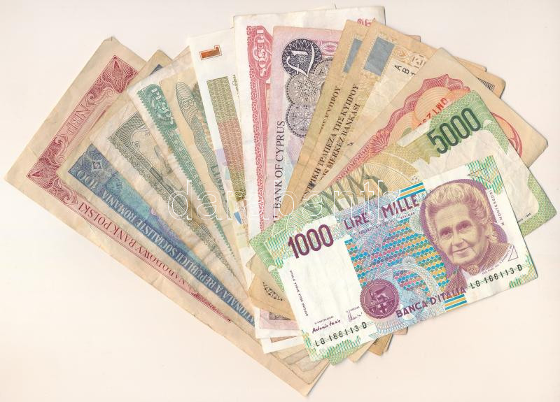 Vegyes, 13db-os bankjegytétel, benne: Kuba, Indonézia, Lengyelország, Olaszország, Románia, Ciprus T:F-VG